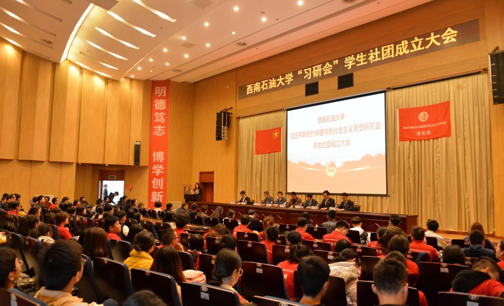 11月16日下午,学校举行习近平新时代中国特色社会主义思想研究会学生社团成立大会暨飞翔大讲堂活动,西南石油大学习近平新时代中国特色社会主义思想研究会学生社团(以下简称“习研会”)正式成立。党委副书记赵正文出席成立大会并讲话,中共成都市委党校马克思主义理论研究教研部主任肖勇教授应邀出席大会并为师生们解读了十九大精神的精髓要义。校团委书记夏艳主持大会。
