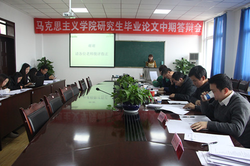 为了督促毕业生按时完成论文,检查毕业生论文完成质量及进度,12月14日14:30,马克思主义学院在思学楼D501、D504、D507三个地点同时进行研究生毕业论文中期检查答辩。答辩委员会成员,全体2018届毕业生参加了本次论文中期答辩,2016级、2017级研究生观摩了2018届毕业生论文中期答辩。