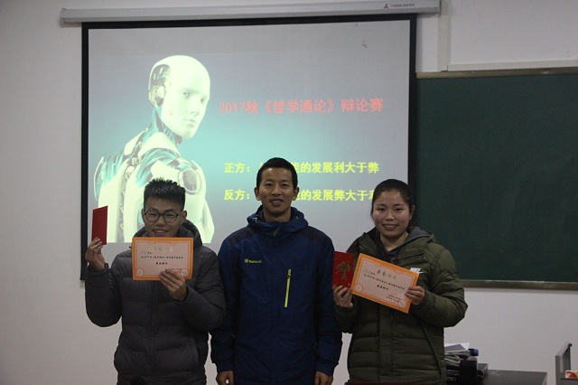 12月25日下午,我院《哲学通论》课程辩论赛在思学楼D507举行。学院党总支书记崔发展出席,马克思主义基本原理概论教研室主任张健丰,任重远博士、高国良博士、郑超博士、赵聃博士等作为大赛评委出席。《哲学通论》课程全体学生、马院学生代表、机电院学生代表参加,比赛现场座无虚席。