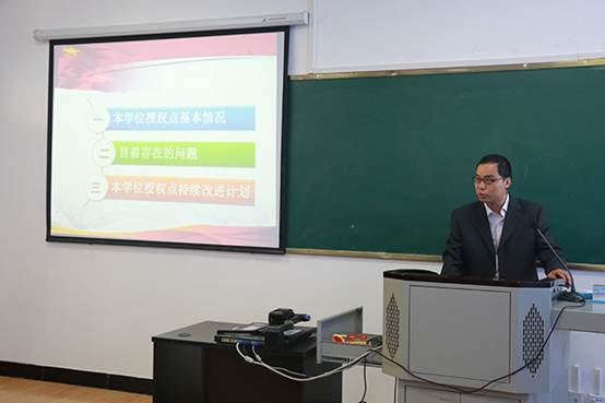 马克思主义学院副院长潘建屯就马克思主义理论一级学科硕士学位授权点的基本情况、自我评估工作开展情况、持续改进计划等方面向评审专家组进行了全面汇报。