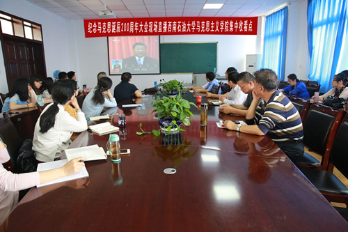 5月4日上午10:00,我院师生在思学楼D507集中收看纪念马克思诞辰200周年大会,认真聆听习近平总书记在纪念大会上的重要讲话。