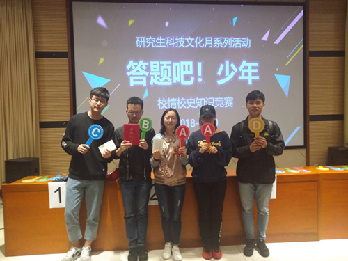 5月10日晚上,由西南石油大学校研究生会和石油与天然气工程学院研究生会共同举办的《学术科技活动月系列活动--答题吧·少年!》校史校情知识竞赛活动在思学楼A114落下帷幕。我院喻金伦、张若石、熊然然同学代表马克思主义学院参加此次校史校情知识竞赛决赛并获得第二名的优异成绩。
