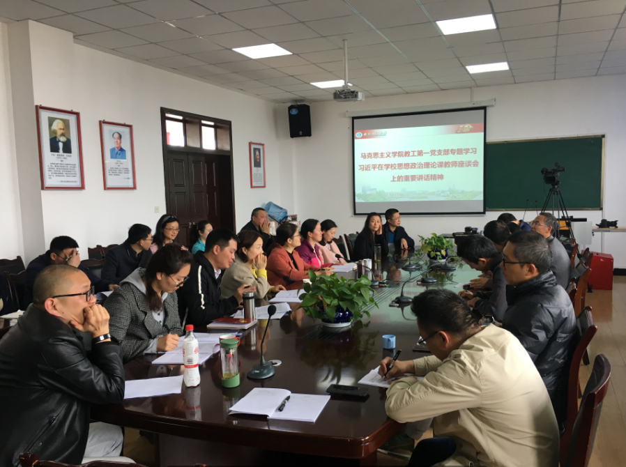 3月21日下午,学院第一党支部在思学楼D507召开学习习近平总书记在学校思想政治理论课教师座谈会上的讲话精神专题座谈会,与会党支部成员结合自身的工作和学习畅谈感想体会。学院党委书记崔发展出席座谈会。支部书记张健丰主持会议。