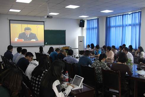 4月30日上午10:30,纪念五四运动100周年大会在人民大会堂举行。马克思主义学院组织全院师生在D507会议室集中观看纪念大会直播,学习习近平总书记在大会上的讲话。
