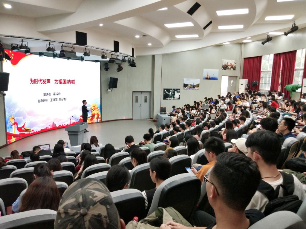经济学2017级申沛璇从“新时代需要新青年,新青年要有新使命”入手,她认为作为新青年的我们应该在新时代这个舞台上努力展现自我,勇担时代责任。青年是整个社会发展中最积极最有生气的中坚力量,来自会计2017级的李淑琴呼吁和鼓励青年大学生争做新时代的弄潮儿,不负时代使命。特邀嘉宾王汀也相信每个中国人都有出彩的机会,能用他们的智慧与双手扛起中国的未来。比赛现场每位参赛选手各抒己见,用自己独特的演讲风格与语言艺术,融情于声,不断触动着全体观众的内心。青年兴则国家兴,青年强则国家强。“一代人有一代人的使命,一代人有一代人的长征。身为新时代下的新青年,我们应该积极拥抱新时代,奋进新时代,让青春在为祖国、为人民、为民族、为人类的奉献中焕发出更加绚丽的光彩。”电子商务2017级郭一李同学的声音响彻在整个会场。