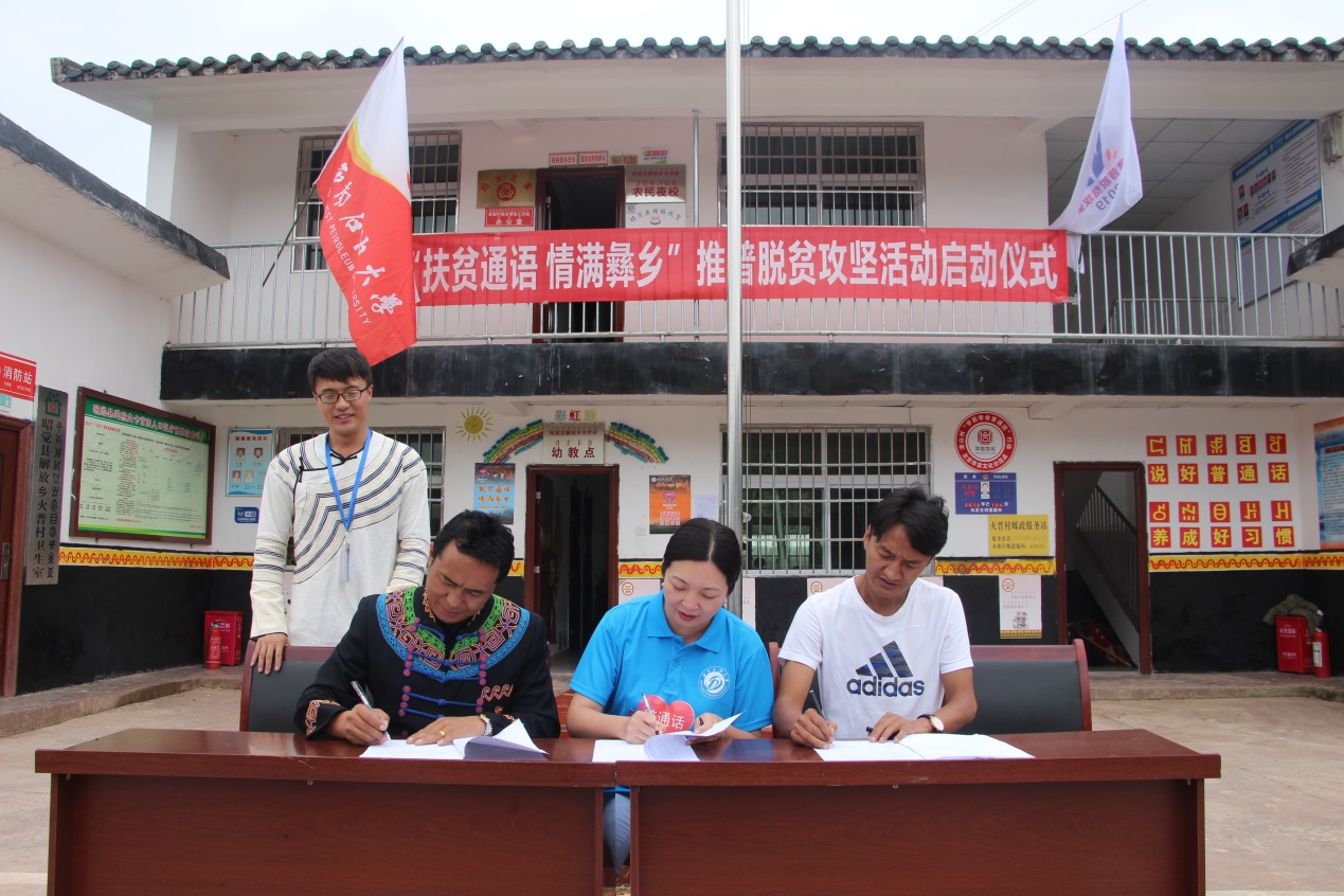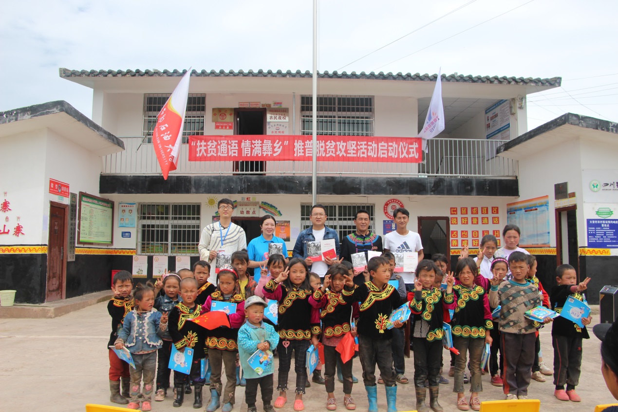 7月9日下午,我校“扶贫通语,情满彝乡”推普脱贫攻坚启动仪式在凉山州昭觉县解放乡火普村举行。昭觉县日喀乡乡长阿洛伍哈、解放乡党委副书记段元昊、凉山州电视台驻火普村扶贫干部罗衣体、西南石油大学马克思主义学院党总支副书记林莉及我校驻日哈乡扶贫干部李凯出席了启动仪式。