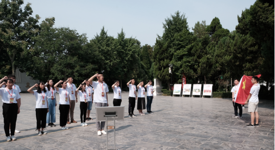 同学们来到了焦裕禄陵园,向焦裕禄同志敬献花篮。在焦裕禄同志的陵前,同学们了解到了焦裕禄同志的临终遗愿,将自己的遗体安葬在兰考的沙丘上,“活着没有治好沙丘,死了也要看着你们把沙丘治好”的精神深深地感动了在场的每一名学生。在焦裕禄同志的陵前,22名师生整齐列队,庄重地举起右拳,重温了入党誓词。