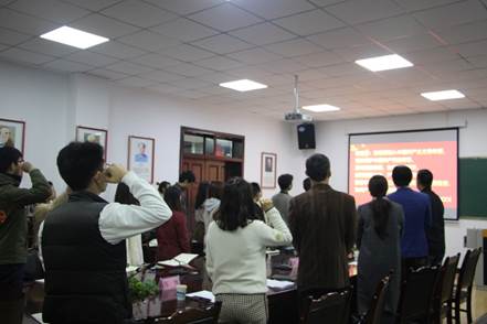 活动伊始,全体领导老师和学员面向国旗,唱响国歌。接着,在青马工程培训班学员代表发言之后,理学院团委副书记伍悦带领全体学员重温入团誓词。
