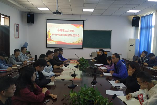 潘建屯在会上指出,思想政治理论课是落实立德树人根本任务的关键课程,马克思主义学院承担了全校的思政课和文化素质课教学任务,组织召开本次座谈会,就是了解广大同学对于思政课和文化素质课的需求,不断提升教学质量,希望广大同学积极发言,多提宝贵意见。