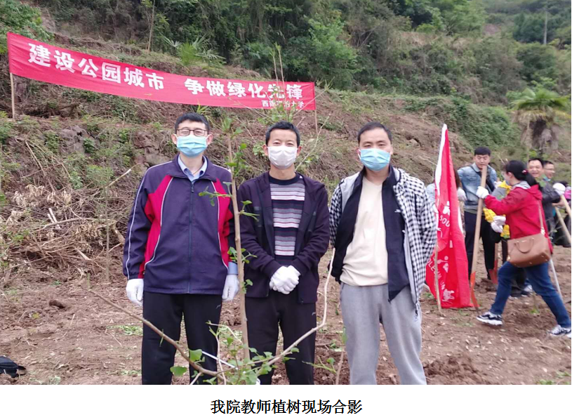 2020年4月22日,为响应四川省直工委2020年四川省直机关、高校、企业、金融机构龙泉山城市森林公园“包山头”植树履责活动,在学院党总支书记崔发展带领下,学院副院长潘建屯、教师卢士敏一行3人跟随学校队伍,来到龙泉山参加植树活动,为城市增绿添彩。