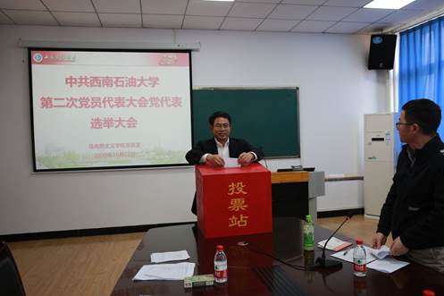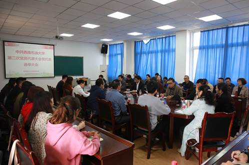 10月22日下午,马克思主义学院党总支在思学楼D507召开全体党员大会,选举产生参加中共西南石油大学第二次党员代表大会代表。校党委书记赵正文,学院全体师生党员参加大会,会议由学院党总支书记崔发展主持。