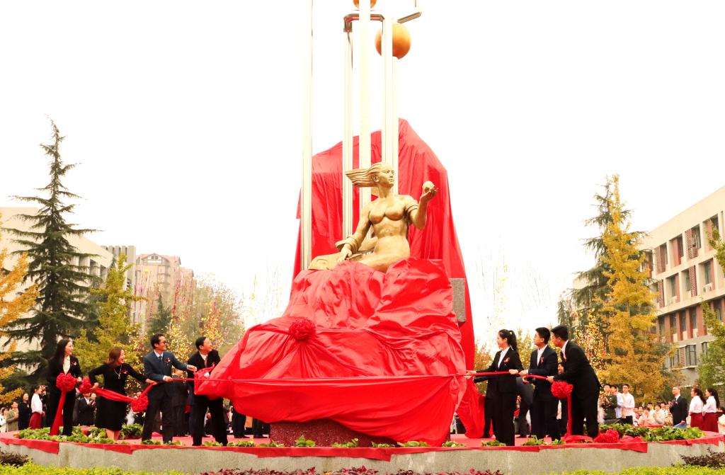 校领导、校友代表、师生代表共同为雕塑揭幕