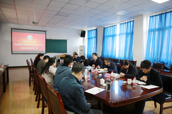 10月29日上午,校党委常委、副校长巫晓兵率队到我院进行工作调研,学校人事处、科研处、研究生院、财务处、实验室与设备管理处等职能部门领导陪同调研。院长张小飞、党总支副书记林莉向巫晓兵一行汇报了学院工作。各教研室主任、新进教师代表、教学办公室主任、组织干事等人员参加了汇报会,汇报会由林莉主持。