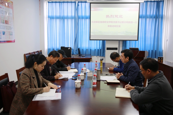10月30日,四川天府新区信息职业学院党委书记景志明一行来院考察交流,学院院长张小飞、副院长潘建屯在思学楼504会议室与景志明一行进行了会谈,四川天府新区信息职业学院马克思主义学院院长周建胜、马克思主义学院院长助理黄亚军等参加了会谈。