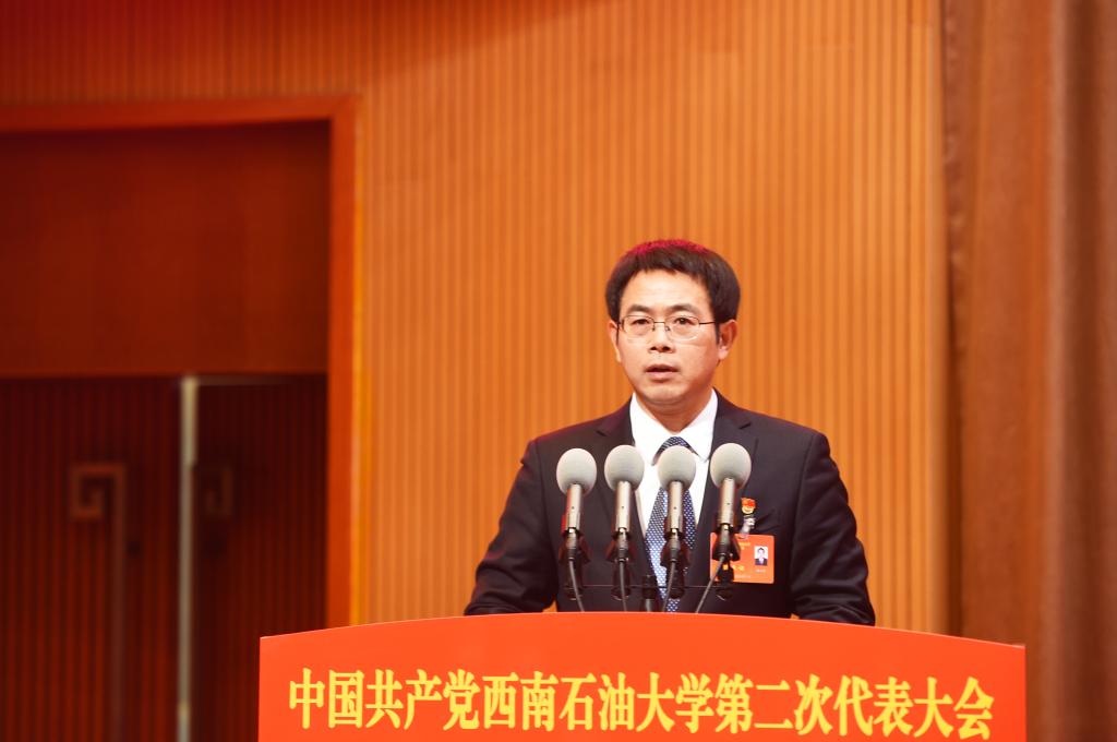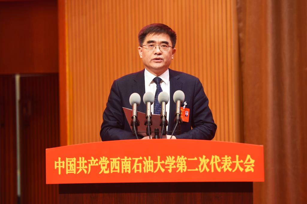 李国贵代表省委教育工委、省教育厅对大会的召开表示热烈祝贺。他说,西南石油大学是迎着新中国的朝阳创建的石油本科院校,享有良好的学术声誉和社会声望。建校62年来,在服务国家能源安全战略和地方经济社会发展的实践中,产出了一大批标志性成果。本次党代会是学校在新的起点上推进高水平建设发展的一次重要会议,在学校发展史上具有里程碑意义,希望学校新一届党委、纪委领导班子踏实苦干、砥砺前行,奋力开创学校工作新局面:要继续全面加强学校党的建设,履行好办学治校主体责任;要紧紧围绕立德树人根本任务,不断提高人才培养质量;要充分发挥学校办学优势和特色,提升服务经济社会发展的整体实力。