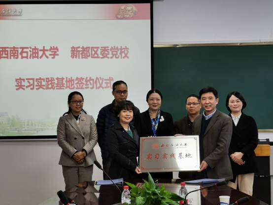 为了优化具有学校和学院特色的人才培养体系,培养具有综合竞争力的高素质应用型、复合型、创新型人才,3月22日,西南石油大学与新都区委党校进行座谈并举行了合作协议签约仪式和实习实践基地授牌仪式。马克思主义学院院长张小飞代表学院与新都区委党校负责人签订协议并授牌。
