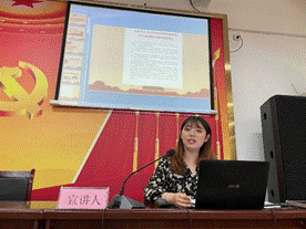 张莉老师以“中国共产党百年辉煌与百年未有之大变局”的主题开启宣讲,“砍头不要紧,只要主义真”,通过革命烈士的牺牲到无数仁人志士的奉献,带领参会的党员群众了解中国共产党百年奋斗的光辉历程和历史性贡献。再从国内外具体实例,通过不同视角的解读,引导党员群众认识百年未有之大变局。