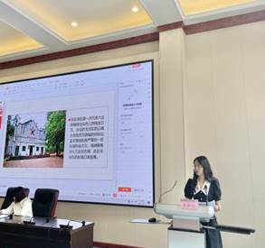 宣讲团成员何雪灵分享了“遵义,历史在这里转折”这一主题。“遵义会议挽艰危,全军将士喜上眉。重占遵义施计巧,再夺娄山显神威。”欧阳文的这首“遵义会议诗”,是“遵义会议挽艰危”后红军“军威浩荡震蒋魁”的真实写照。通过对遵义会议前后的对比,带领大家深刻地认识到了遵义会议的精神与意义。