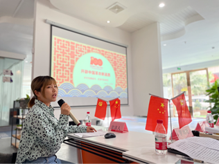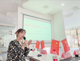 宣讲团成员、我院硕士研究生罗茜月,通过介绍了建党之前的社会背景,和建党时所面临的艰难困苦和所处的险境,从会议召开时的风波、到与会代表不得不紧急转移、再到会议在嘉兴南湖的继续召开,带领大家回到了那个激情年代,向大家介绍了我们党是在什么样的背景下召开的,又为何把七月一日定为建党日,令大家对于中共一大有了更深、更具体的了解。