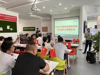 6月3日下午,新都区委党史学习教育宣讲团高校宣讲分团成员们在成都传化公路港物流有限公司开展了党史学习教育专题宣讲活动,我校马克思主义学院喻滨老师、张莉老师以及硕士研究生罗雨晗、朱萍萍、罗茜月、刘刚参加了本次宣讲活动。