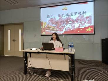 宣讲团成员、我校马克思主义学院2020级研究生何雪灵,带领大家回顾了党历史上生死攸关的转折点——遵义会议,娓娓讲述遵义会议的前因后果,再现遵义会议的伟大历史意义,倡导党员干部学习践行遵义会议精神。最后在“党旗更飘扬”的优美旋律中结束了本次宣讲。