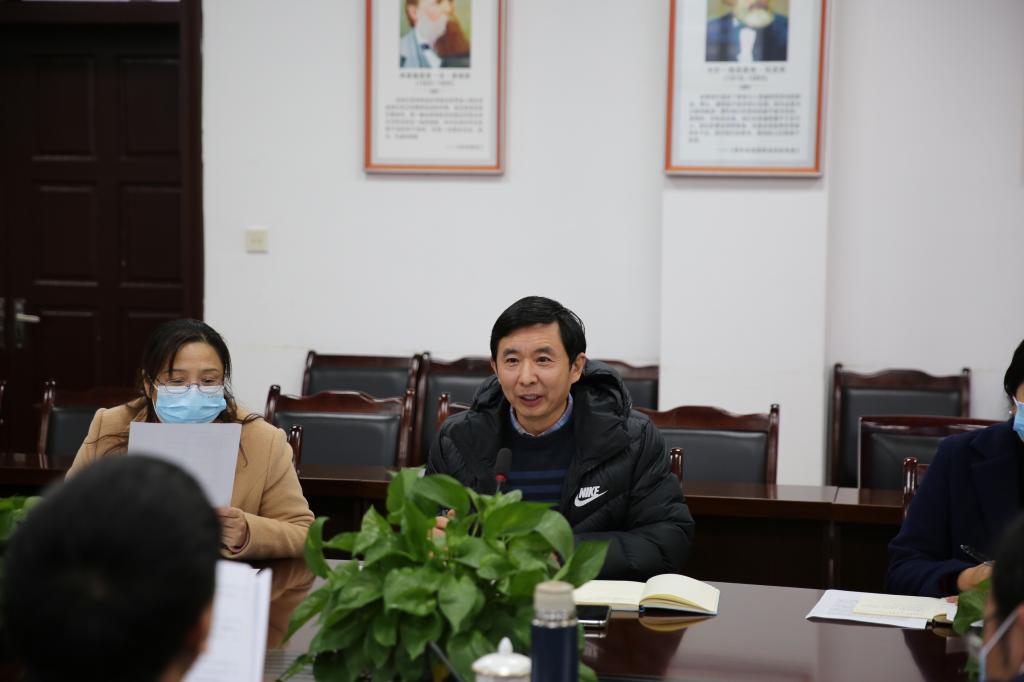 张小飞就学院“双一流”建设、研究生培养等方面存在的问题及今后努力方向作了汇报,并对各位领导的关心和支持表示感谢。他介绍了学院发展现状及面临的机遇挑战,深入分析了学科现有的优势和存在的差距,用“五个聚焦”(聚焦学科特色、聚焦人才培养、聚焦平台建设、聚焦对外交流、聚焦社会服务)概括了学院“双一流”建设的思路举措。他强调,学院下一步将制定《学院中青年教师发展规划》,为中青年教师搭建平台,提升中青年教师的教学能力和科研水平,促进中青年教师的快速成长。