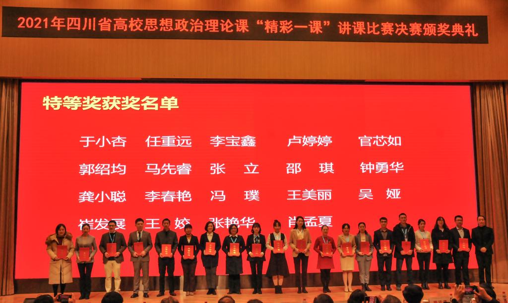 12月10日,2021年四川省高校思政课“精彩一课”讲课比赛决赛在我校举行。我院5名教师从全省103所高校378名参赛教师中脱颖而出进入决赛,荣获特等奖4项,二等奖1项。
