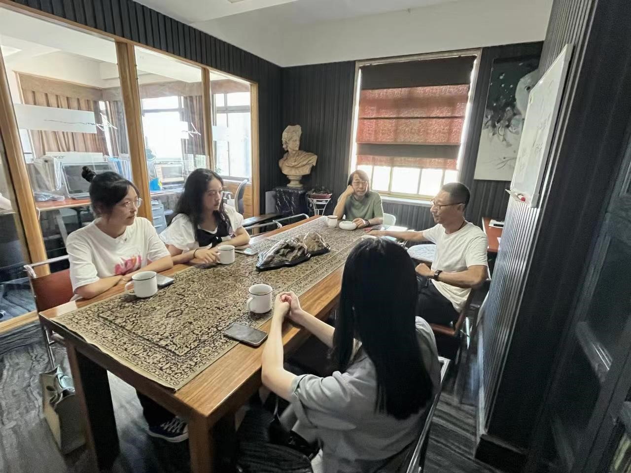 交流会上,潘昱州老师简要介绍了此行的目的,李云川董事长对我院师生的到来表示热烈欢迎,承诺将不遗余力地满足我院师生的交流学习目的。汇德轩理论品牌部负责人张益聪简要介绍了汇德轩文化传播有限公司的概况。