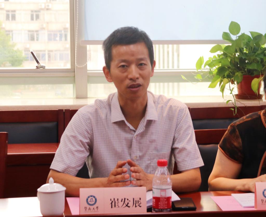 7月1下午,学院党委书记、院长崔发展教授一行六人到暨南大学马克思主义学院调研考察开展座谈交流。暨南大学马克思主义学院院长程京武,副院长魏传光、张龙平,办公室主任曾煜东,毛泽东思想和中国特色社会主义理论体系概论教研室主任吴昱,形势与政策教研室主任王高贺,以及部分教师代表参加座谈。