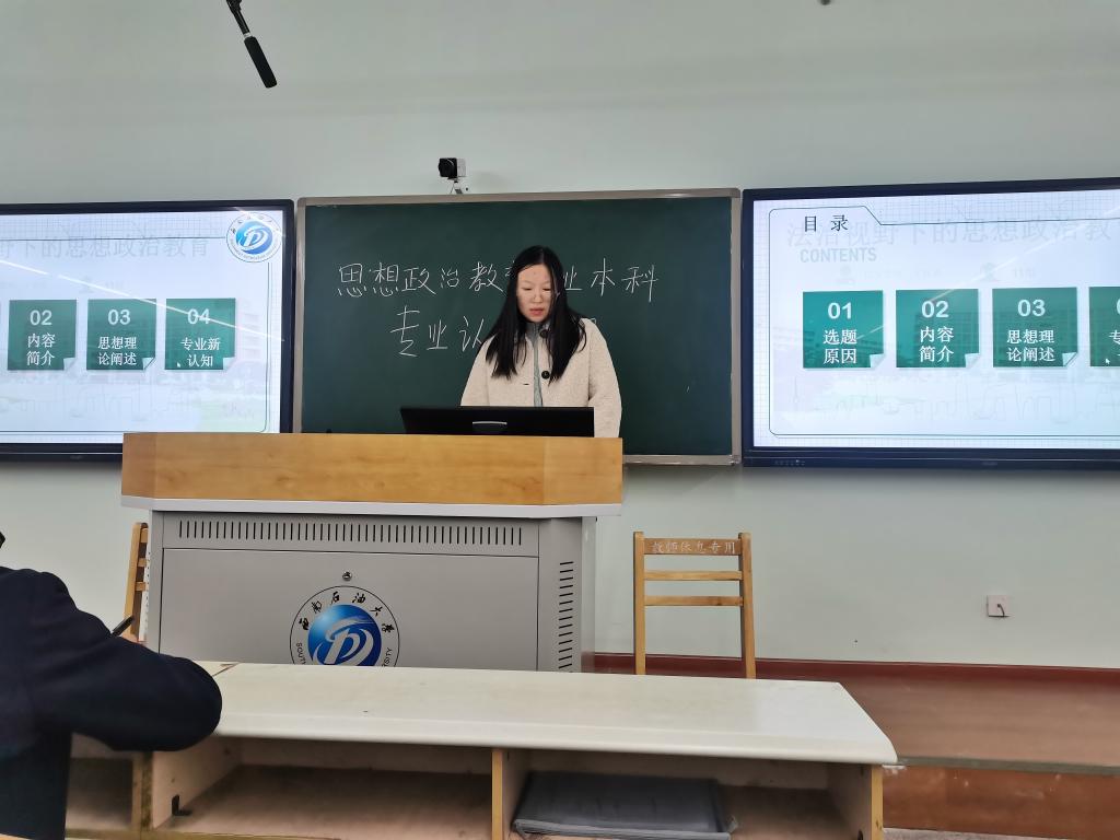 3月2日晚上7点到9点,在思学楼A107,思想政治教育专业教研室组织2022级本科生围绕对思想政治教育专业的认知状况进行继续汇报,汇报依然分两个环节,第一个环节是团队选举成员进行PPT 现场展示,第二个环节就是视频成果展示。2022级本科生全体学生参加,专业教研室所有老师参加并担任评委老师。