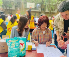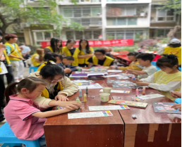 图五 儿童绘画 图六 志愿者为社区居民进行讲解