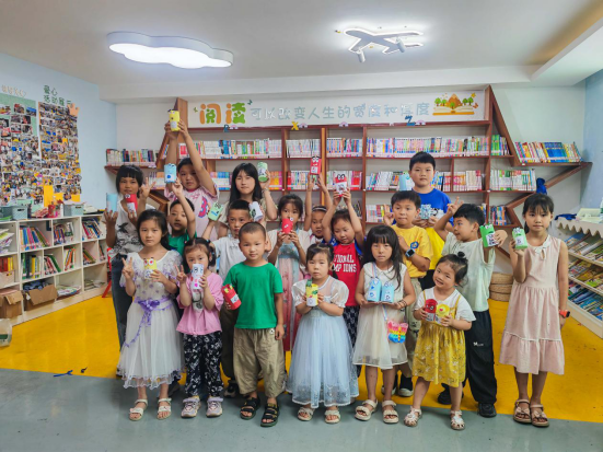 垃圾分类也是低碳环保的重要一环。实践队收集塑料瓶,鼓励孩子们动手动脑,利用塑料瓶来制作垃圾桶,让孩子们在实践中领略到废物利用的快乐。