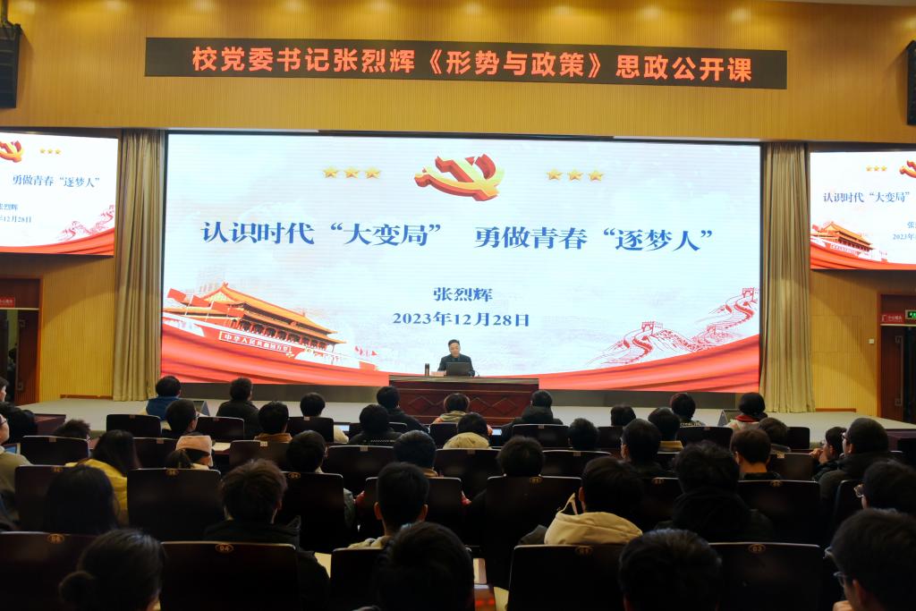 张烈辉从三个方面讲解了我们当前面临的形势和挑战。他指出,世界百年未有之大变局加速演进,我国发展进入战略机遇和风险挑战并存、不确定难预料因素增多的时期,改革发展稳定任务之重、矛盾风险挑战之多、治国理政考验之大前所未有,青年学生只有对前进道路上的机遇和挑战了然于胸,才能更好抓住机遇、妥善应对挑战,赢得优势、赢得主动、赢得未来。