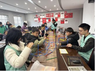 宣讲结束后,实践团与小朋友们一起投入到欢乐的互动游戏中。“管道拼接”环节,孩子们分组合作,用彩色积木共同搭建象征连接与协作的“梦想管道”。游戏不仅锻炼了孩子们的动手与协调能力,更让“共建共享”的理念在玩耍中自然浸润心田。