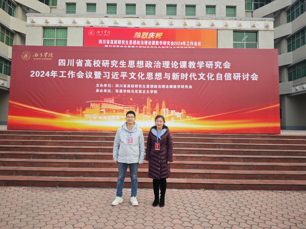 1月14日,“四川省高校研究生思想政治理论课教学研究会2024年度工作会议暨习近平文化思想与新时代文化自信研讨会”在西昌学院举行。我院研究生教研室主任文婷婷、青年教师徐强参会。