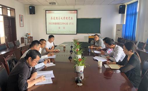2022年5月3日下午,马克思主义学院党委在思学楼D507开展本学期第三次中心组学习会,专题学习习近平总书记在中国人民大学考察时重要讲话精神、《以钉钉子精神扎实推进“双一流”建设》等内容。会议由党委书记崔发展主持,学院班子成员、党委委员、各支部书记参会。