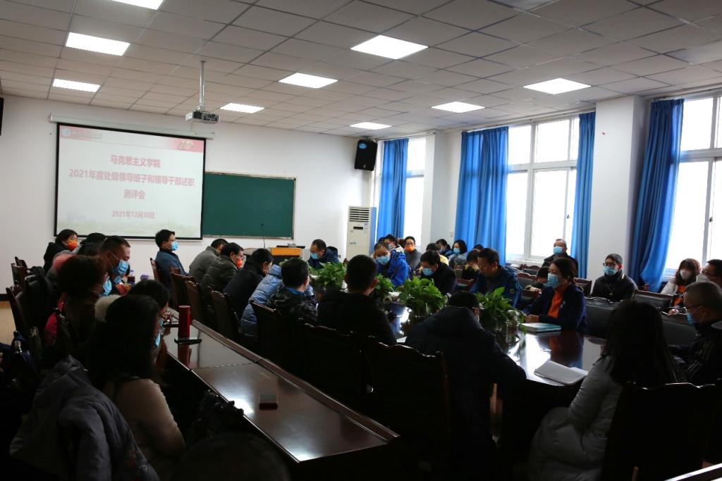 2021年12月30日下午,马克思主义学院在思学楼D507召开院领导班子和领导干部2021年度述职考核测评会。会议由院干部考核工作小组组长赵聃主持,全院教职工和学生代表参加。