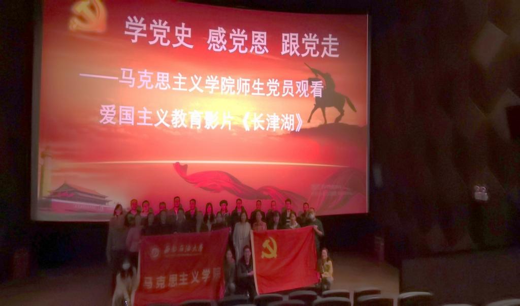 为纪念中国人民志愿军抗美援朝71周年,继承发扬伟大抗美援朝精神,进一步加强党员的思想教育,增强党组织凝聚力,10月21日下午,马克思主义学院党总支组织部分师生党员开展观影《长津湖》主题党史学习教育。