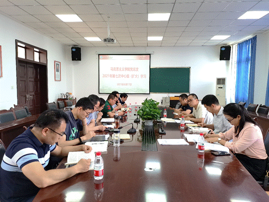 2021年6月17日,马克思主义学院党总支第七次中心组(扩大)学习会议在思学楼D507召开。中心组本次集中学习了习近平同志《论中国共产党历史》《中华人民共和国教育法》《习近平谈治国理政》《半月谈》《人民日报》中的部分内容。学习由学院副院长潘建屯主持召开,班子部分成员、党总支委员会委员、支部全体委员、科级干部、教研室主任与副主任、工会主席与副主席参加。