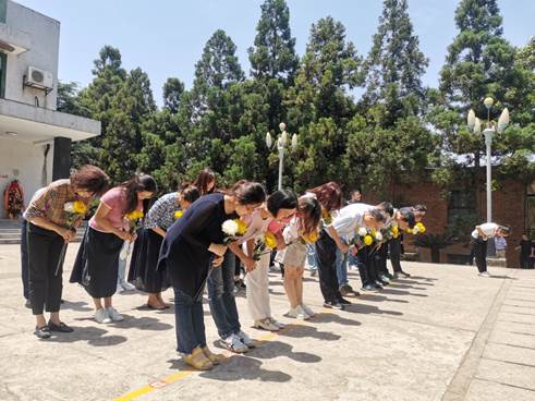 在讲解员的带领下,师生党员先后参观了“两弹城”三防教育馆、“两弹”历程馆,馆内的展陈主要以实物、模型、影像资料、场景复原等方式还原了中国研制两弹不平凡的历程。在邓稼先居住了14年的旧居前,是邓稼先夫人许鹿希摆置的邓稼先塑像,全体师生党员在邓稼先塑像前深情鞠躬、敬献鲜花,向老一辈科学家们致以最崇敬的敬意与深切的缅怀。最后,在学院党总支书记崔发展的带领下,师生党员一起重温了入党誓词,誓向革命先辈学习,努力践行为党的事业奋斗终生的承诺。