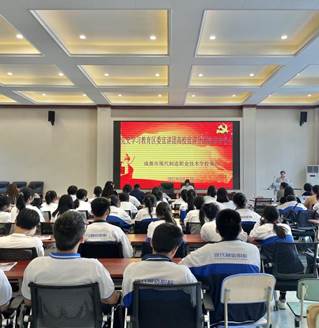 5月31日下午,新都区党史学习教育区委宣讲团高校宣讲分团成员走进成都市现代制造职业技术学校,开展党史学习教育专题宣讲活动。此次互动性专题宣讲活动是由驻区高校党史学习教育宣讲团成员、西南石油大学马克思主义学院蒋朝莉老师、邵琪老师和研究生潘永红、杨宇思、何雪灵、刘刚等参加了本次专题宣讲活动。
