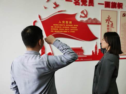 在主持人介绍了罗星同志的基本情况之后,罗星同志宣读了转正申请,汇报了自己在预备期内的思想、工作、生活等方面的进展情况,真诚地表达了对党的向往,对党的忠诚,永远跟党走的决心,并表示在今后工作中严格要求自己,做一名合格的党员。然后,培养人潘昱州同志对罗星同志的培养考察情况进行了介绍。随后,支部成员分别对罗星同志作出评价,说明她在预备期内的优缺点,以及有待改善和提高的地方,并表达是否建议其转为正式党员。民主评价后,申请转正人回避,与会党员进行了举手表决,一致同意罗星同志转为正式党员。最后,支部书记张健丰同志做了总结性发言,希望罗星同志能够高标准严格要求自己,尽快熟悉业务,为马克思主义学院的发展努力奋斗。在张健丰同志领誓下,罗星同志庄重地进行了入党宣誓。