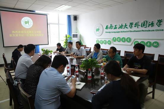 为进一步加强我院党建工作成效,积极学习优秀经验做法,5月28日下午,我院党总支书记崔发展、副书记林莉一行,赴外语学院开展调研交流,就学院党建、统战、工会等方面工作,同外语学院党委书记杜宗良、副院长吕旭英、党委副书记孙德刚等人进行了深入交谈。教工支部书记张健丰、李凌,工会主席赵聃,办公室主任胡仲成,组织员李锦韬等同志参加会议。