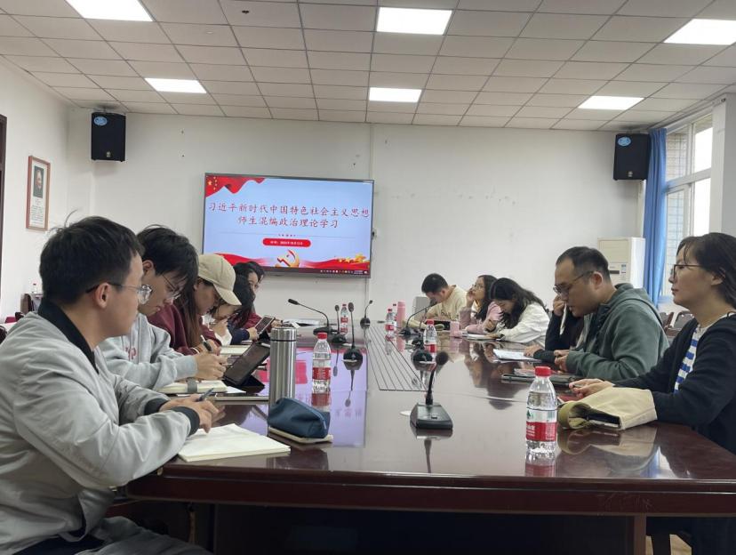 为持续提升习近平新时代中国特色社会主义思想师生混编支部全体党员的理论素养,不断增进对习近平文化思想的认识和理解,我支部于2023年10月12日在思学楼D507开展了政治理论学习会议。会议以研讨的方式展开,由支部书记赵聃同志主持,应到人数22人,实到人数18人。