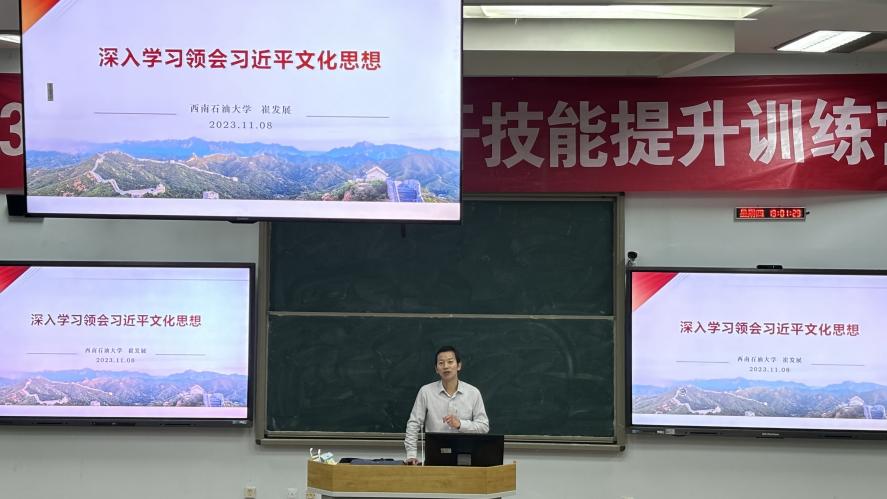 崔发展教授以《深入学习领会习近平文化思想》为主题进行授课,他指出,当前世界正经历百年未有之大变局,文化的地位日益凸显,世界文化交流空前活跃,交融逐步加深,交锋复杂尖锐,新时代宣传思想文化工作的重要性不言而喻,习近平文化思想是马克思主义中国化时代化的最新理论成果,作为入党积极分子应该深入学习领会。随后,崔发展教授具体从习近平新时代中国特色社会主义思想深刻回答的三个问题;新时代取得的文化方面的伟大成就;在做好宣传思想文化工作上要坚持“七个着力点”的重要要求;要聚焦重点、多措并举,不断创新新时代宣传思想文化工作新局面等方面进行讲解, 带领大家领会学习习近平文化思想的科学内涵。