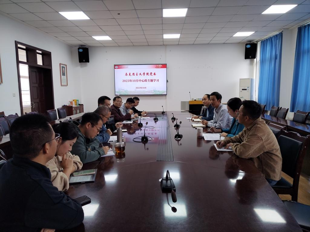 2023年10月26日,马克思主义学院院党委在思学楼D507开展2023年第十二次中心组专题学习,会议由党委书记、院长崔发展主持,学院班子成员、党委委员、教工党支部书记参加。