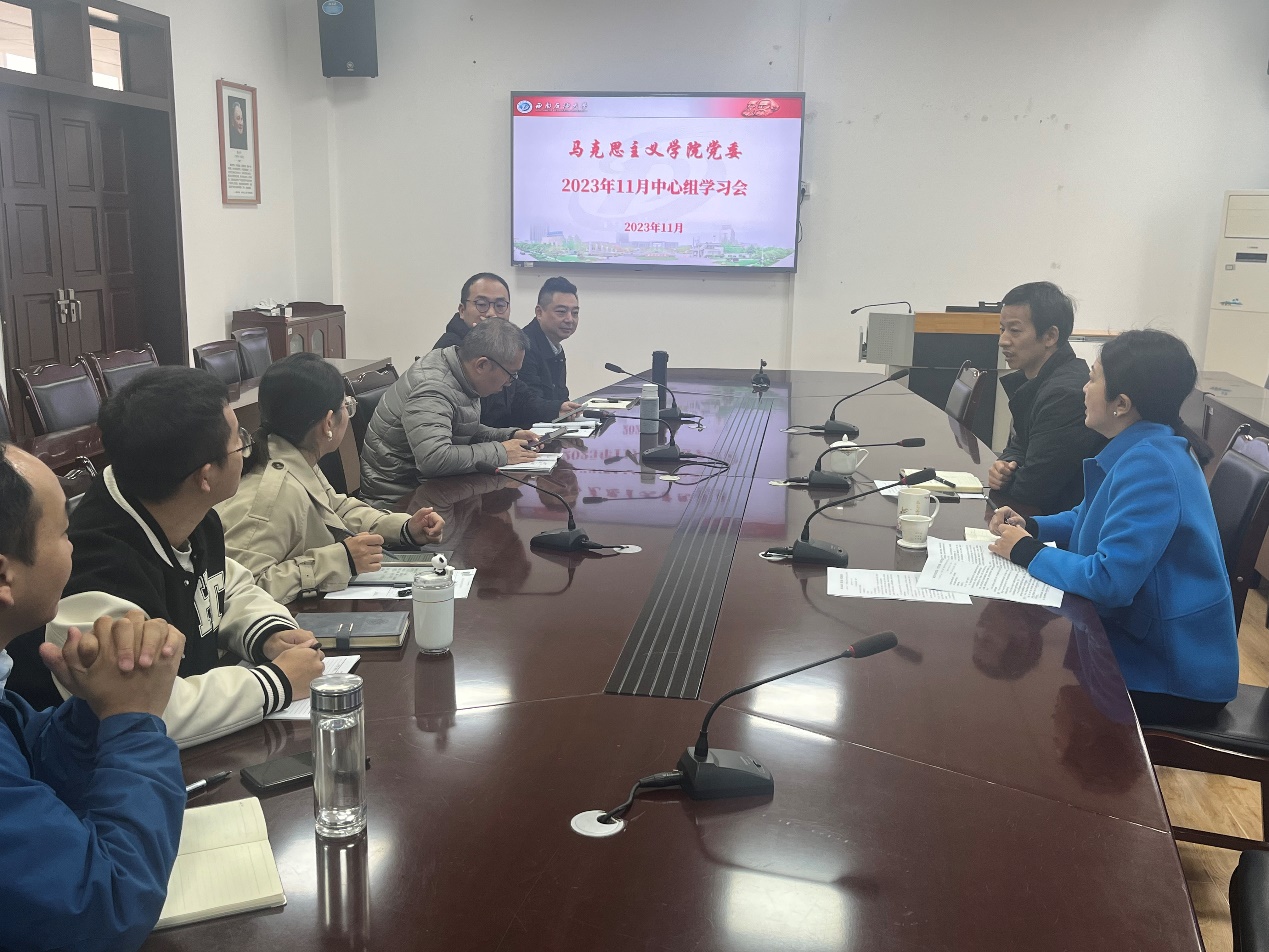 2023年11月20日,马克思主义学院党委召开本年度第十三次中心组学习。党委书记、院长崔发展主持会议,班子成员、党委委员、科级干部、师生党支部书记参加。