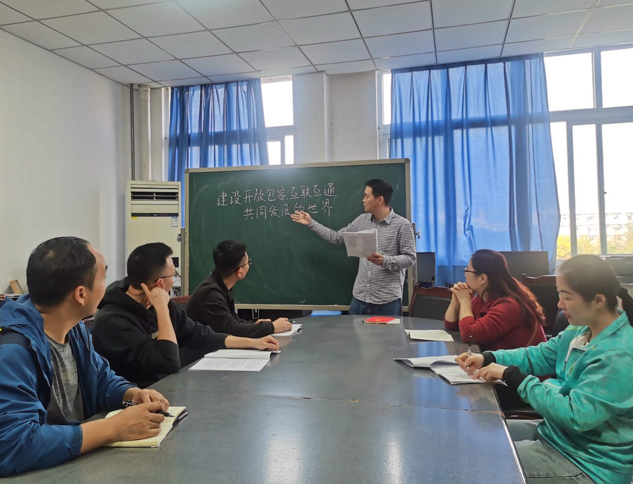 11月9日下午,围绕习近平总书记在第三届“一带一路”国际合作高峰论坛开幕式上的主旨演讲精神,教工一支部在思学楼D411室开展“开放包容、互联互通、共同发展”主题政治理论学习。本次学习由支部书记张健丰同志主持,支部各成员参加此次学习。