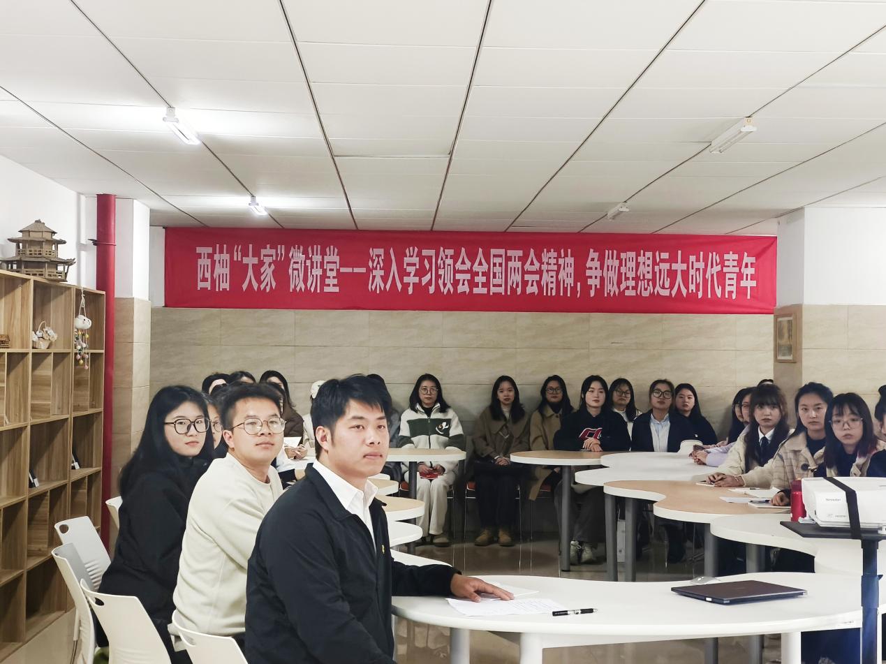 3月14日下午,我院临溪书院B区一支部在社区临溪书院B102开展了“西柚大家微讲堂”品牌党建活动,本次活动以“深入学习领会全国两会精神 争做理想远大时代青年”为主题。研究生2022级党支部书记、学院团总支副书记李锦韬主持,研究生第一党支部书记、研究生辅导员罗朝民,临溪书院B区一支部党员、马院部分研究生党员参加。