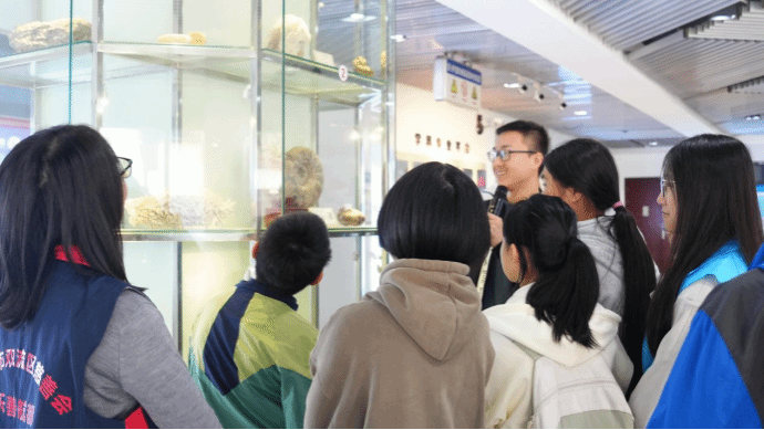 随后,大家来到“多彩的宝石”地球科学博物馆,形态各异的矿石标本和地质模型立即吸引了孩子们的目光,他们围在展品前仔细观察、踊跃提问,在沉浸式探索中激发科学兴趣。张健丰表示,这正是党的二十届四中全会强调的“一体推进教育科技人才发展”的生动实践,通过科普教育激发青少年科学兴趣,为培养未来能源领域创新人才打下基础。